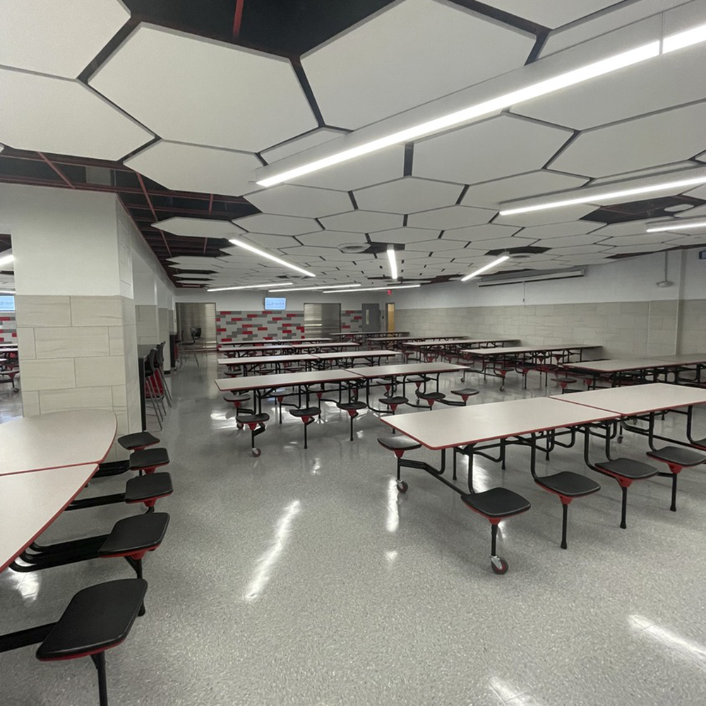 Renovation to existing high school cafeteria including new storefront, ceiling, flooring, wall tile, paint, electrical and mechanical.