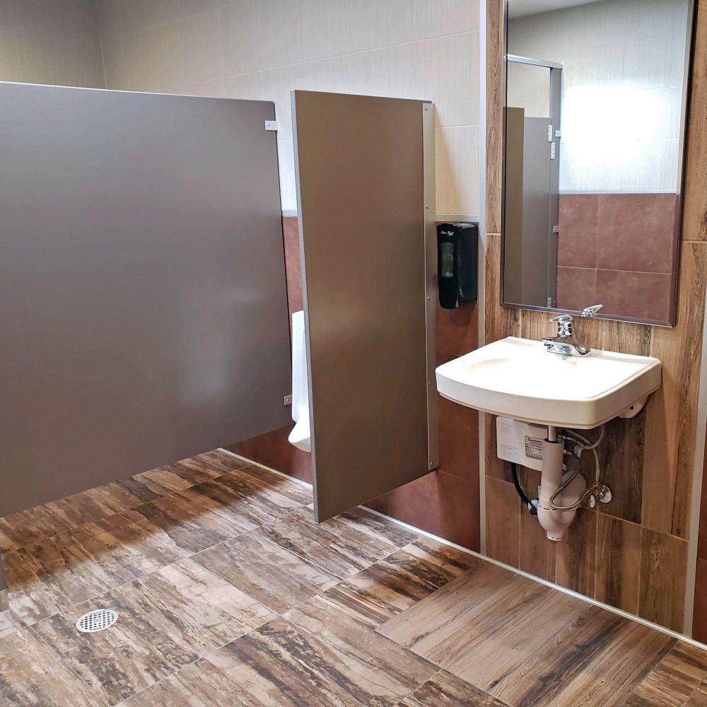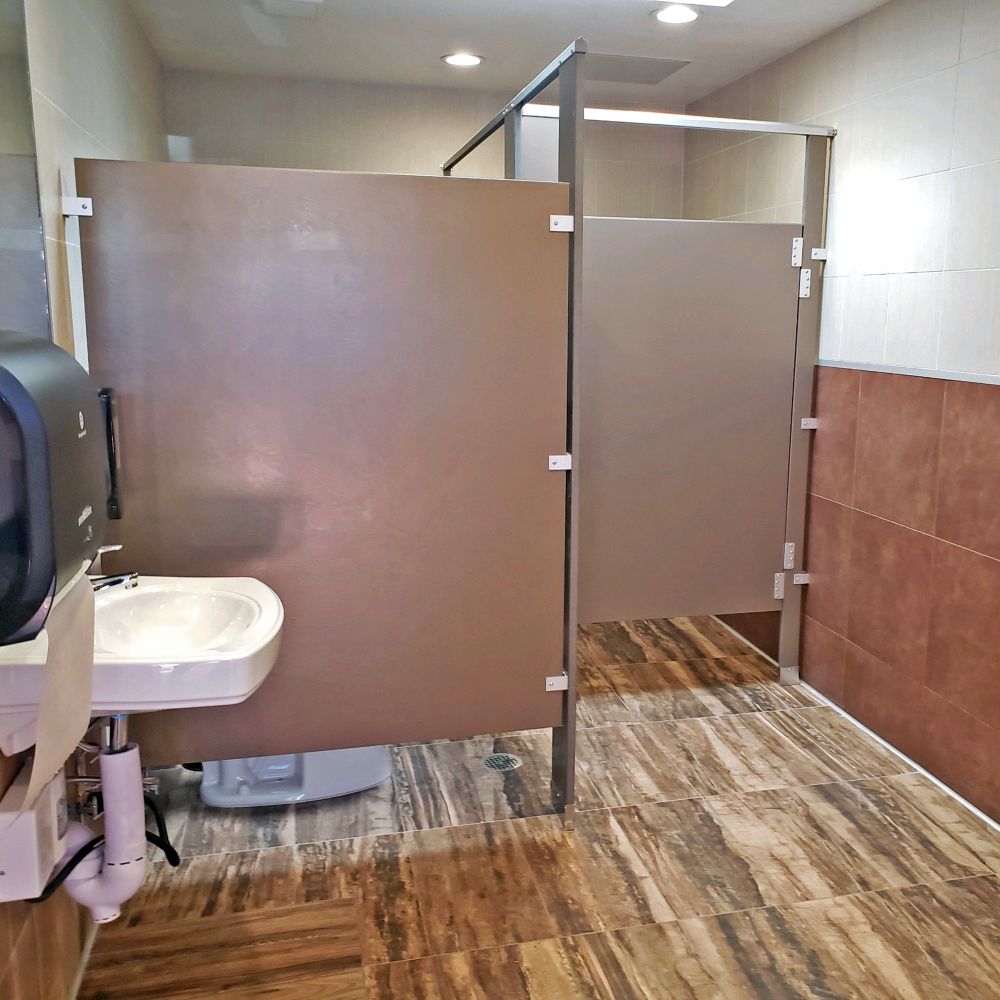 Renovation of six airpark tenant restrooms at Falcon Field Municipal airport. Scope included full interior demolition and disposal, exterior demolition, concrete and asphalt work, drywall replacement, ceiling replacements and patching, new ceiling access, doors, aluminum louver windows, drains and sewer lines, floor self-leveling application, full ceramic tile with accents at floors and walls, new plumbing fixtures with under sink instant hot water heaters, spot lights and switches, full toilet partitions and accessories.