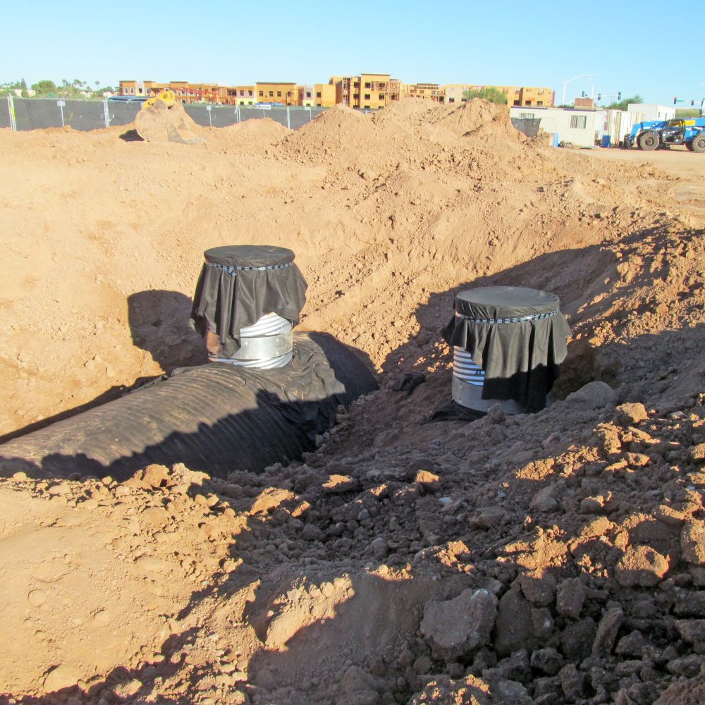 Installation of all wet utilities for this 11 acre site were completed in three phases. SDB self-performed the installation of domestic water, grease water interceptor, storm drains, catch basins and retention tanks, fire line with back flow preventers and fire hydrants and sewer line.