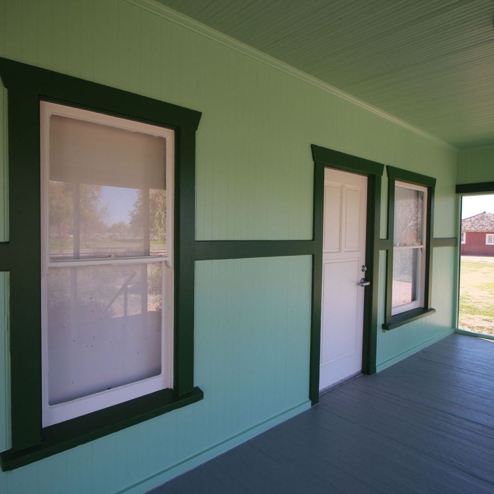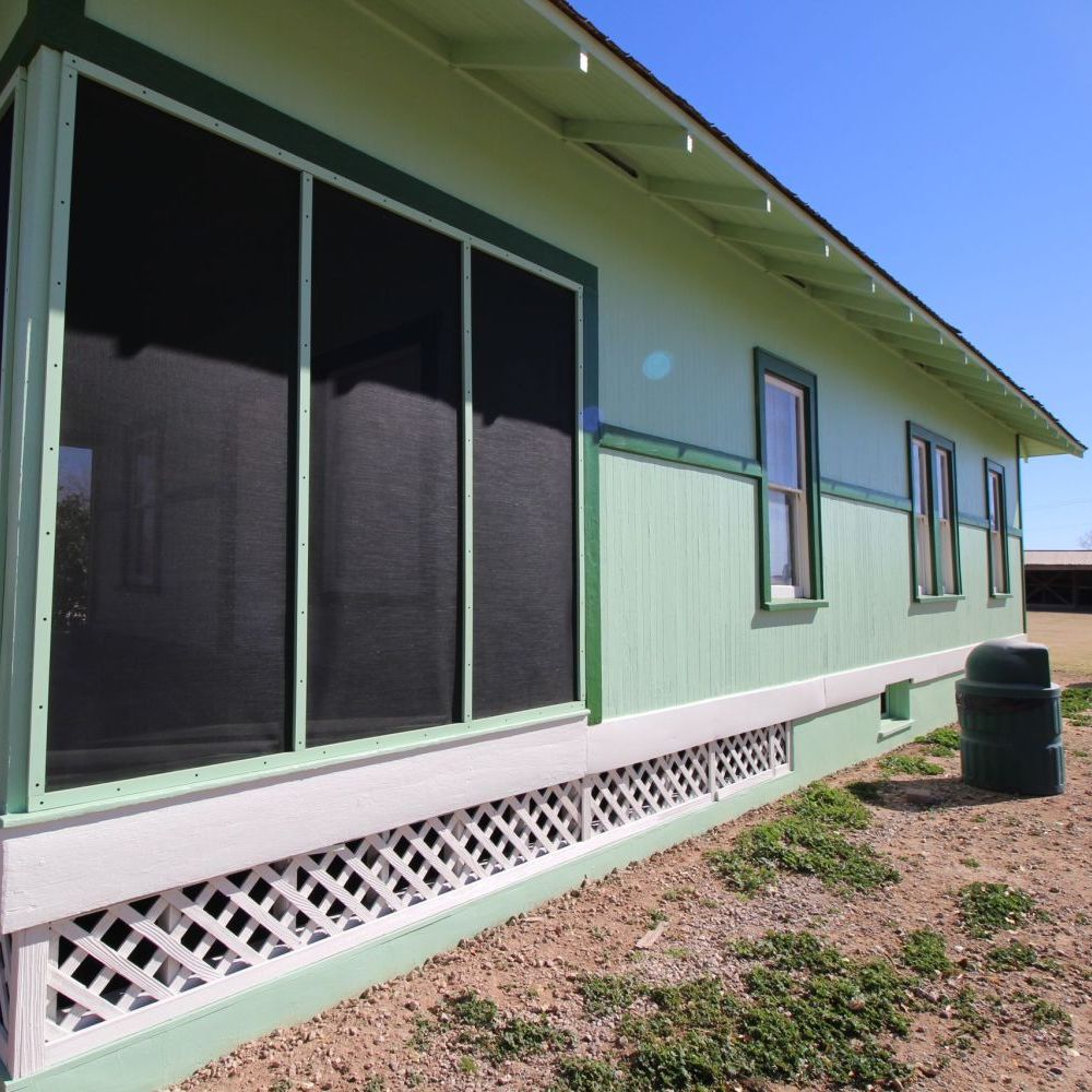 Exterior repair and painting of the Edwards and McCroskey historic homes in Tumbleweed Park. The project required focus on the historical preservation of the houses. The early 1900s houses are used for tours to teach about the history of Chandler. Scope included removal of old paint, replacement of missing siding/shingles, painting to match existing colors, rebuilding of screen porch with modifications to allow each screen to be replaced individually and reinforced to prevent damage from area cats. Repaired areas of rot/termite damage to restore to the original look.